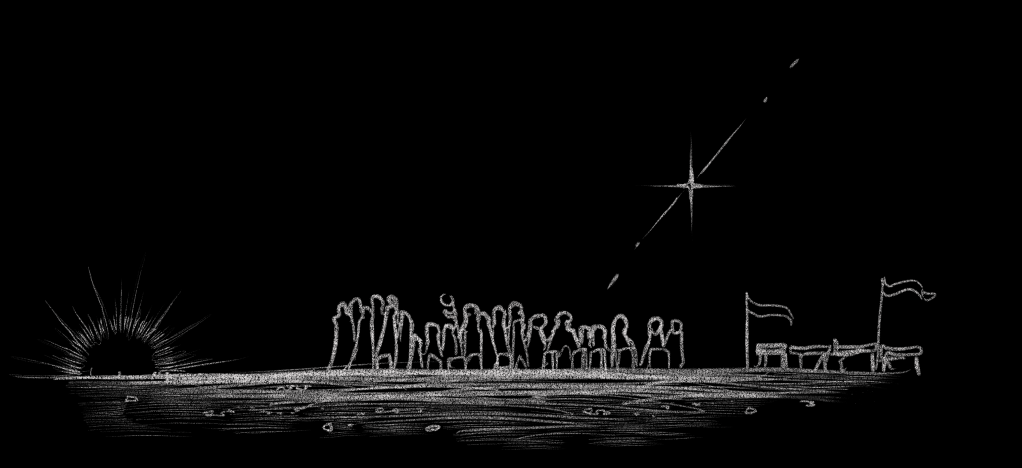 “There it is,” someone said. A solemn murmur stirred through the crowd. Nalina glanced upwards, towards the horizon. The deep lapis hues of night were just beginning to fill that flat edge of sky. Yet within that sky, an unmistakable glimmer flared into view as it caught the taulight. Too fast for a star or planet but far too slow for a meteorite, just about anyone on Calphis could recognize the Bellepaust at tauset. That ancient, deconstructed starship meant a lot of things to a lot of people. To some it was a sign of hope, to others a sign of things best forgotten. To some it was a symbol of a future yet to come, to others still it was a sign of the ancient past. Today, unfortunately, it meant something entirely new to young Nalina. It was mythically silent as they all stood in the flats, just outside of town. The endless whistle of wind, the crunch of a boot shifting in the dust, all the usual sounds of Calphis. Nalina just kept on staring at that tiny star, rising into the sky. She had no particular fascination with the starship or what it represented, but she was pretty content not to look at anything else right at that moment. Aarav finally put a hand on her shoulder. She looked up at him. Her brother’s face was plain, almost cold. Weird, she thought. It wasn’t an expression he wore well. Normally he was smug and grinning and laughing, pressuring her to do stupid things. Today he was solemn, especially as he nodded forward, beckoning her gaze back to the congregation. That’s when she finally noticed Deacon Belvi Monsia, the old, local proprietor of the True Light of Sol, staring right back at her. Dearest Nalina Tori Hiara, 3rd born of House Hiara, kindly get the fuck on with it, his gaze seemed to say in the most reverent manner possible. Anxiety trickled down her spine. She was five years old and the scrutiny of a crowd full of adults was bearing upon her nerves. This was made especially worse by the full True Light regalia that the deacon and some of the others were wearing. They were all looking at her expectantly. She remembered the flower in her hand. They had told her to hold it carefully. Being born on the dustiest planet in the known human diaspora, she had assumed it was a vegetable, and therefore hadn’t tried eating it. It was a curious thing though. Nowhere in her short memory could she recall such vivid white… Leaves? They didn’t even feel like leaves. She looked back towards the Deacon, who made a subtle gesture with his hand. Finally, Nalina looked into the grave. Her brother Atriv lay there. They had put him in a canvas robe. It certainly was not flattering enough for Atriv to have worn in life, but bio-degradable deathgarb were all the rage with corpses on Calphis. A simple shroud covered his face, hiding his expression. The third born, only daughter of the house of Hiara would later lament that she felt… almost nothing. She was five. Atriv was ten years her elder, and for most of her short life he had been laboring in a youth camp in Salsridge, which she couldn’t even find on a map. He had eaten well, earned a lot of labor credits, made a lot of friends and got diagnosed with the tamorte just in time to invite those friends to the funeral. Nalina gave the white pedaled flower a gentle toss and watched it drop to Atriv’s lifeless arm. She then stepped aside. Aarav tossed his flower and did likewise. Their mother was last, but remained near the head of the grave, eyes cast solemnly upon her first born. The day most heavily weighed upon her, it seemed. Her son had been snatched from the world by an incurable condition, unique to this planet. She dropped the white flower. Upon seeing the flower land, Nali lightened slightly, hoping the ceremony was over. Instead the Deacon started speaking. “Atriv Clency Hiara, Homocalcipha, Child of Sol. By the beacon light and the life of Tau we commit your remains to the world. The final sacrifice due to us, your family and kin. Take root and flourish. Give unto the world that which we may forever cherish, and may your soul forever guide us.” Nalina stared at the Deacon, then her brother and the flowers that graced his robes. She didn’t know the flowers carried miceaum, and that tradition dictated at least a few of them in the grave to make sure the corpse decomposed. All the soil on Calphis used to be completely inert, but these days microbes were everywhere. Micabacteria were thriving in the topsoil… but sometimes traditions outlive their practicality. Nalina remained impatient as the choir, mostly made up of familiar adults from her community, began their hymn.