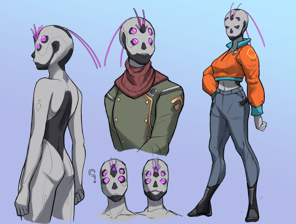 Agni are the hyper sensory main product line of Anetta Industries. With one of the widest spectrums of vision in humanity, Angi are best known for their compound eyes and extendible olfactory/EM receptors. Their audio and static sensors are dispersed around their head and hands.