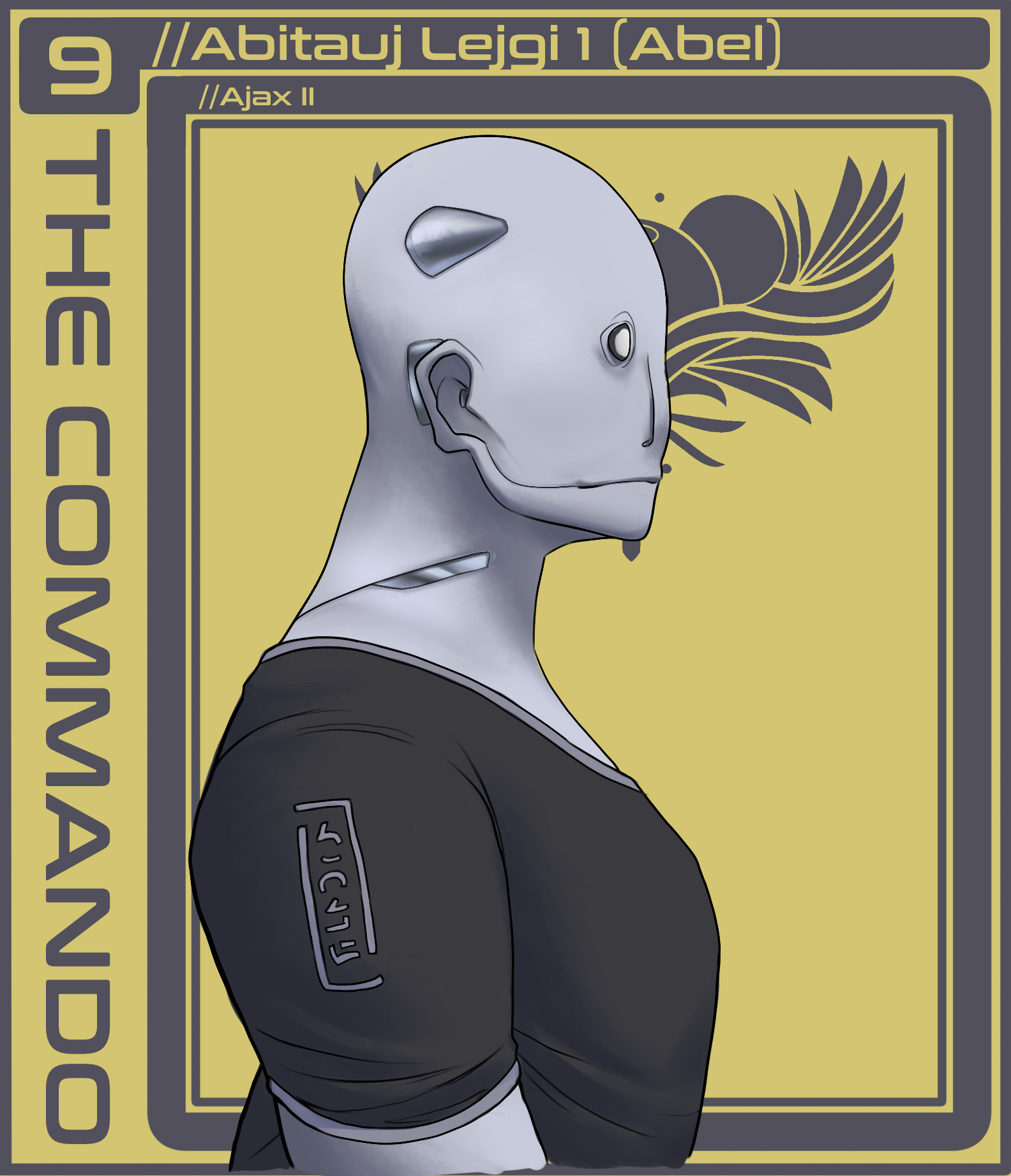 Abel shares the personality of his kin. He is quiet and unexpressive. His voice is frightening, so he signs and uses cybernetic communication as needed. Although agreeable, he understands that most people aren’t looking to him for friendship, thus compounding his reserved demeanor.