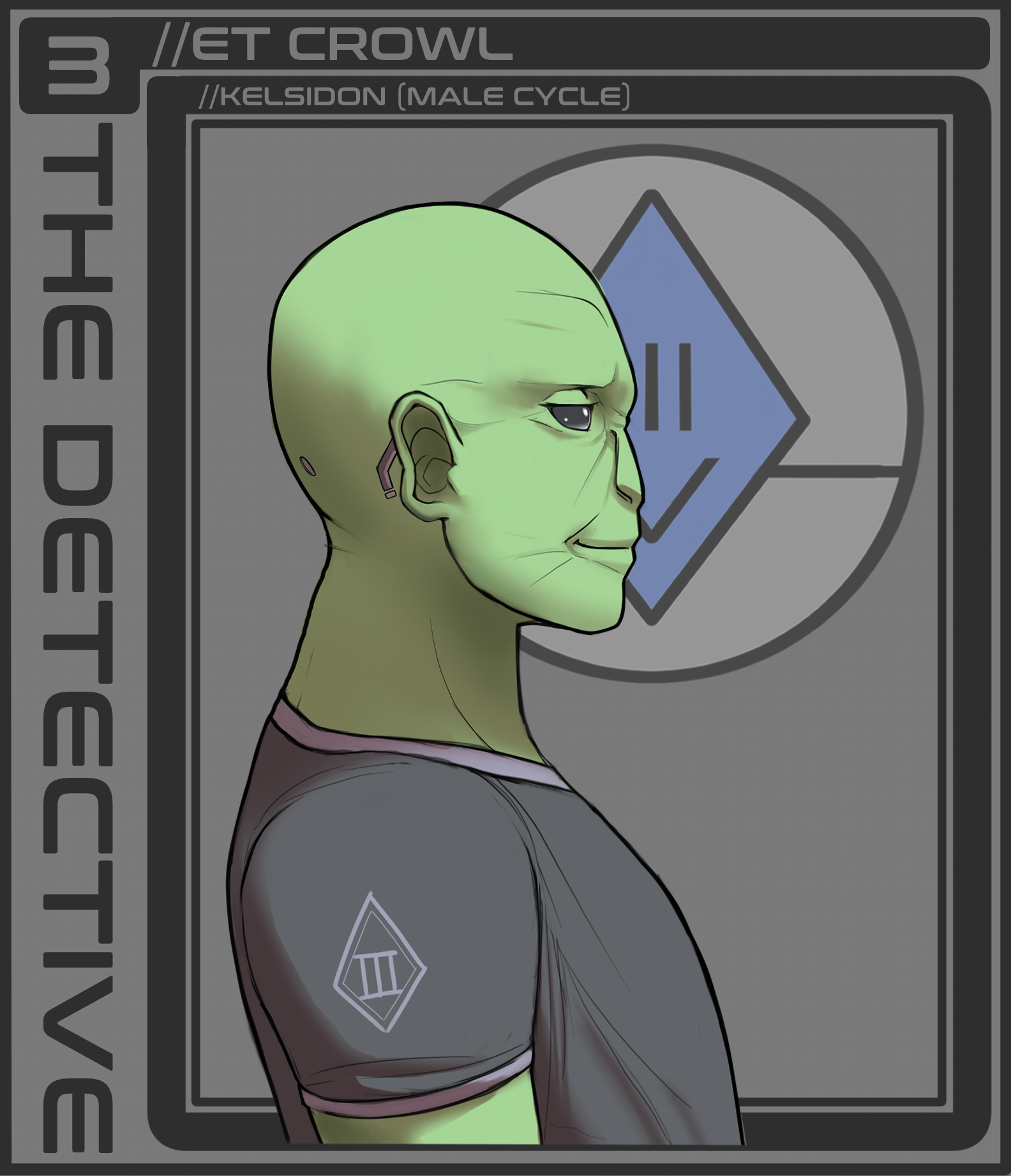 Et never really fit in with the old “white gloved kelsidon” stereotype. While many of his kin opt for office finger-shoes, he much prefers the hard-fingered boots of field work. Et made the switch from clerk to operations supervision very early in his career and he never looked back. While he spends a lot of time in the Guild center, he gets to take shifts on port authority, which allows him to indulge in his second love, eating. An aspiring food critic, Et tends to base his shift around whatever food he hopes to find on that particular day.