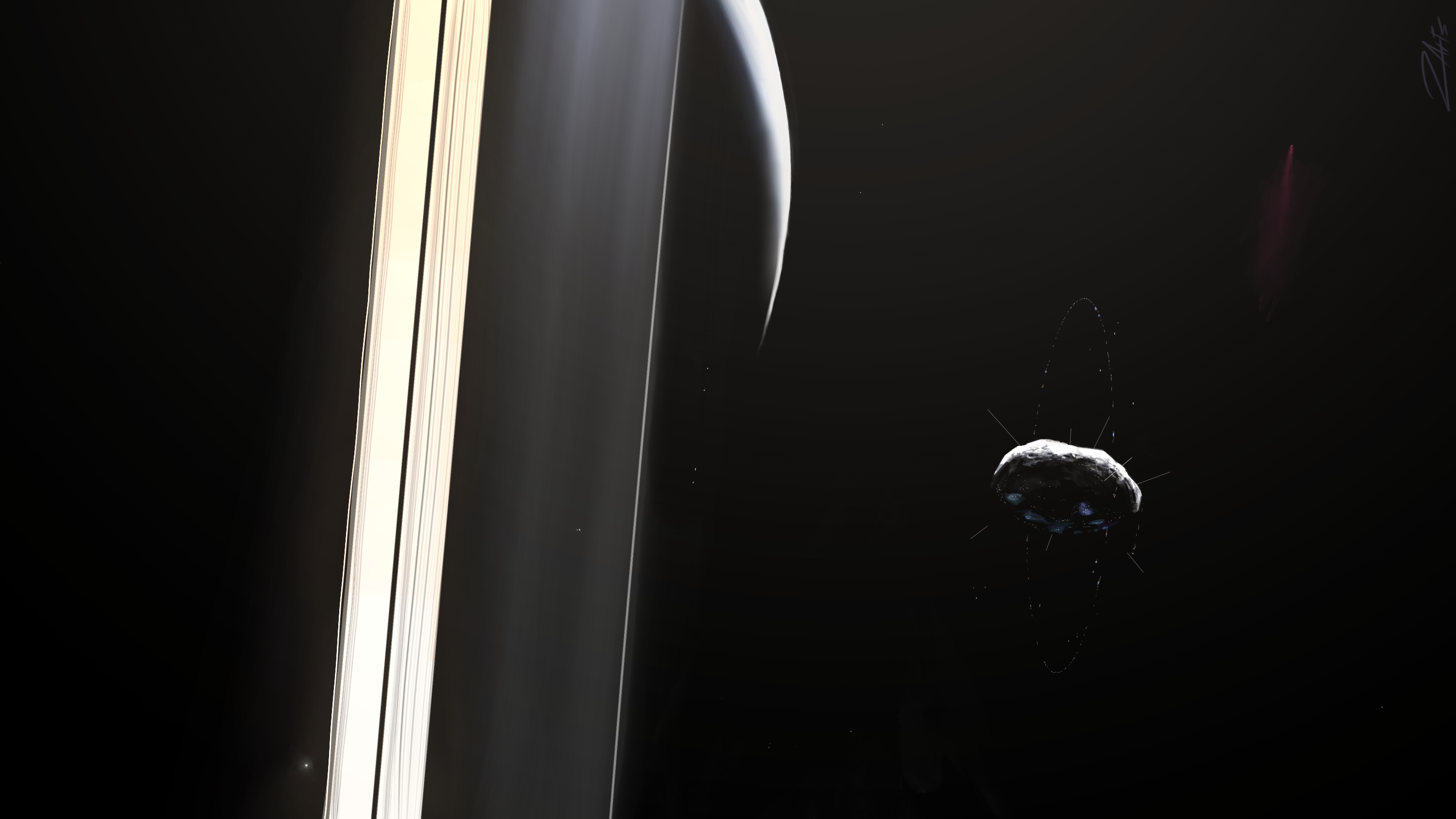 Easily one of the most mysterious orbitals in Sol. Rittik silently orbits high over Pluto and Charon, responding to no one and accepting only it's own autonomous spacecraft. The double-ring orbital participates occasionally on matters of the Kuiper Alliance through electronic, coded correspondence only. The orbital occasionally buys resources and materials and accepts them through automated shuttles. None of what is purchased is particularly out of the ordinary. It is unclear if anyone is actually living within Rittik and many contemplate if a powerful curated intelligence is simply running an empty city.