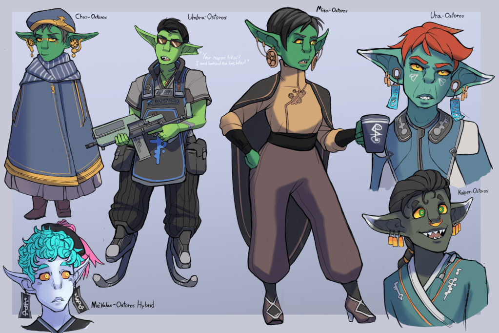 The original rollout of Ostoros 4 targeted five major markets. The Pluto-Charon system, Umbriel, Miranda, high orbit Uranus, and the deep space Kuiper Alliance. Ostoros accurately assessed that all of these spheres had a high demand for specialized workers with small resource footprints. The efforts of the company resulted in 5 distinct subcultures of goblyns, all with specific regional traits.