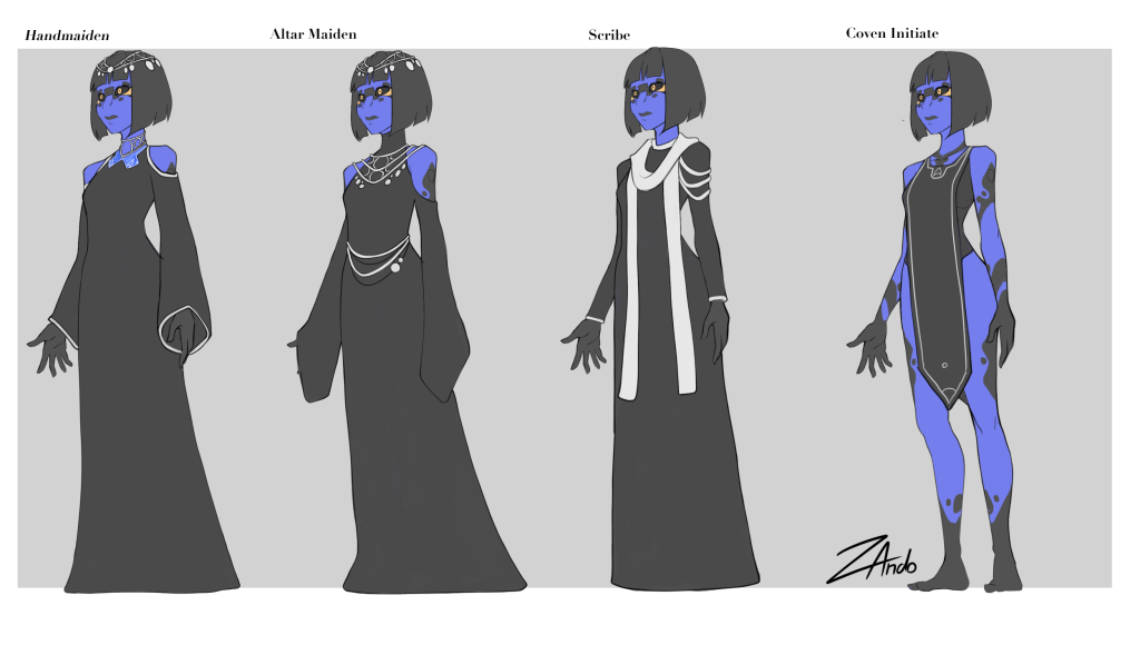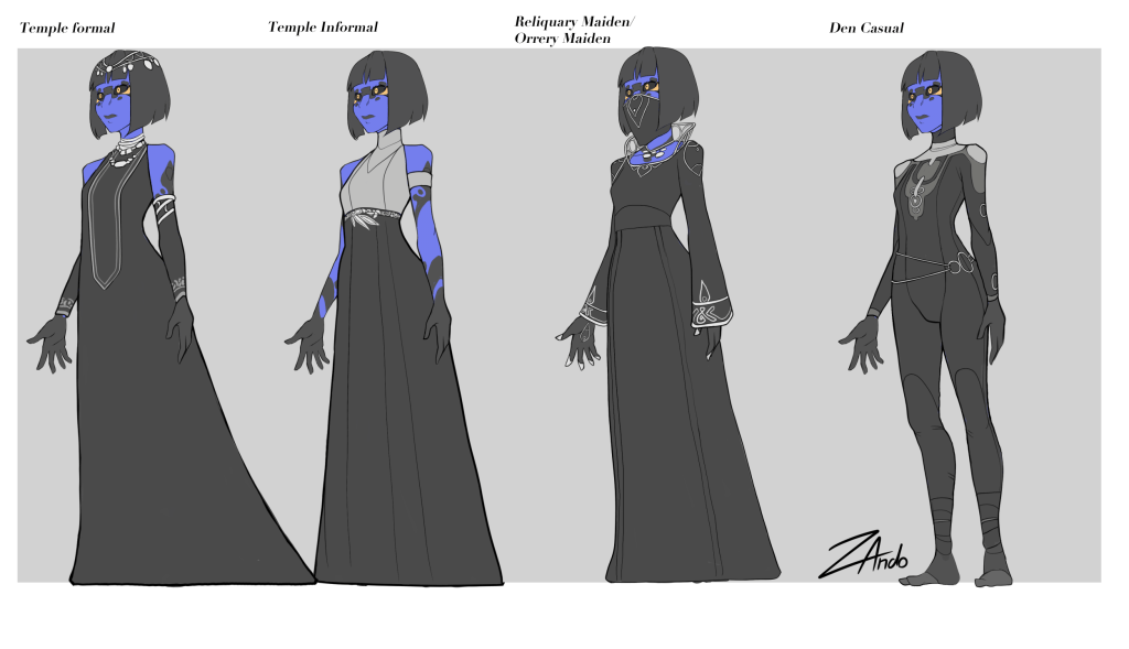 Most Quodilus clothing complies with Theocratic doctrine. Dark greys and vivid blues with silver, white or gold ornamentation is the norm.